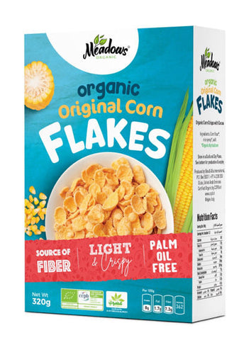 Product Description: Meadows Organic Original Corn Flakes are light and crispy, high in fiber and free from palm oil. They contain no added processed sugars, making them a healthy breakfast option. Perfect for anyone wanting a delicious, nutritious meal to start their day.