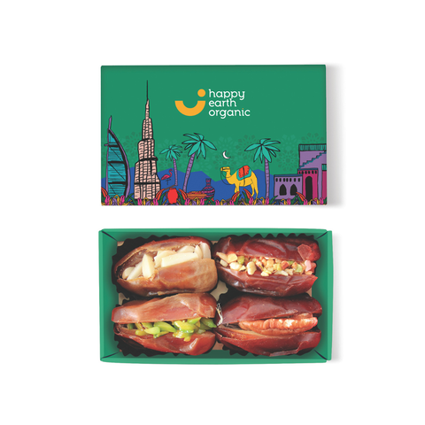 Product Description: Enjoy 4 pieces of premium stuffed dates featuring four distinct fillings.