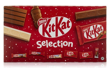 Product Descriptions: The Nestle KitKat Selection Box is a delightful assortment of KitKat treats, including Chunky Peanut Butter, Chunky Milk, Chunky White, and 4 Finger Milk bars. Perfect for gifting or enjoying during the holiday season, it offers the signature KitKat crunch and a variety of delicious flavours. Imported from the UK, this 234g box is a festive indulgence.