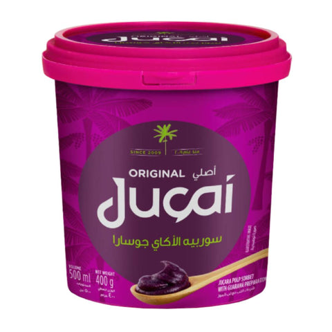 Ingredients: Juçara Pulp, water, guaraná preparation (water, sugar, guaraná extract, natural flavouring, antioxidant: ascorbic acid), sugar, yam pulp, inverted sugar, citrus fiber, stabilizers: guar gum and xanthan gum, Acidity Regulator: Citric Acid, Natural Flavouring.