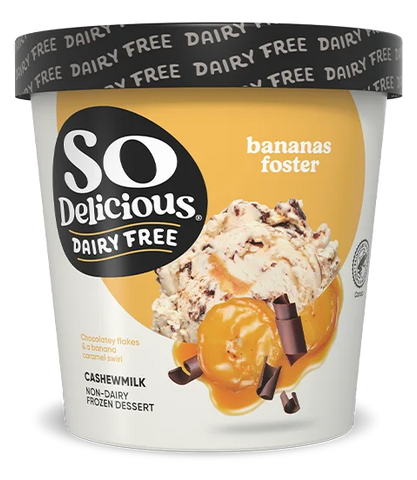 Product Description: Indulge your fantasies in a flavor that is natural and healthy with the Bananas Foster Cashew milk Non-Dairy Frozen Dessert. It has natural bananas splashed with exotic chocolate and a creamy base of vanilla. Hints of nutty taste with a creamy texture that melts within your mouth. This mouth-watering flavor can be enjoyed with a lot of accompaniments like waffles, cones, smoothies, etc. But nothing beats the raw taste of dessert on a summer's evening. It is completely gluten-free and dairy-free for vegans. You can enjoy it alone or...maybe you will find it difficult to share once you try it.