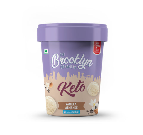 Product Description: Classic vanilla ice cream teams up with roasted almond bits to give you a surprise crunch in every bite. Naturally sweetened with no added sugar. Per serve size 100 ml - Calories:125, Net Carbs: 1 g