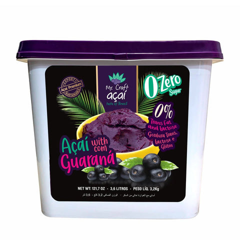Ingredients: Water, Açaí pulp, maltitol, maltodextrin, sorbitol, modified starch, dietary fiber, stabilizers guar gum (INS412), xanthan gum (INS415) and carboxymethylcellulose (INS466), acidic citric acid, guarana extract, artificial guarana flavor, dyes artificial Bordeaux red (INS123), bright blue (INS133) and sucralose.