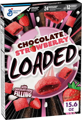Product Description: Enjoy livin' cereal rich with Chocolate Strawberry Loaded Cereal. This chocolate strawberry flavored cereal features filled sweetened wheat cereal pieces that are crispy on the outside with delicious naturally and artificially flavored chocolate creme on the inside. Every bowlful of Loaded Cereal takes breakfast time to the next level by combining crunchy, creamy, and epically yummy, all in one spoonful.